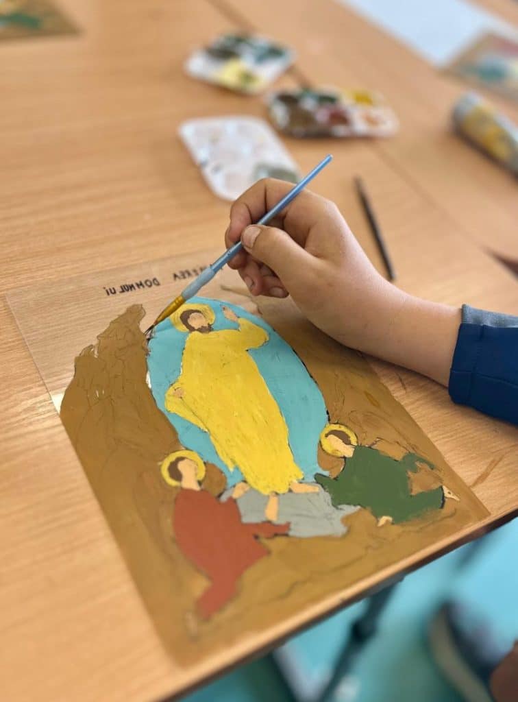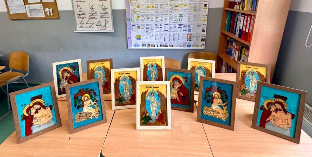 Atelierul a oferit elevilor nu doar ocazia de a învăța tehnica picturii pe sticlă, într-un veritabil workshop susținut de Maria Balai, cadru didactic (Religie) în cadrul instituției de învățământ din localitate, dar și de a încerca să transpună în propriile creații tradițiile locale din perioada Sărbătorilor Pascale.